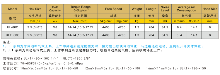 彎頭氣動脈沖扳手UL-60C/ULT-60C